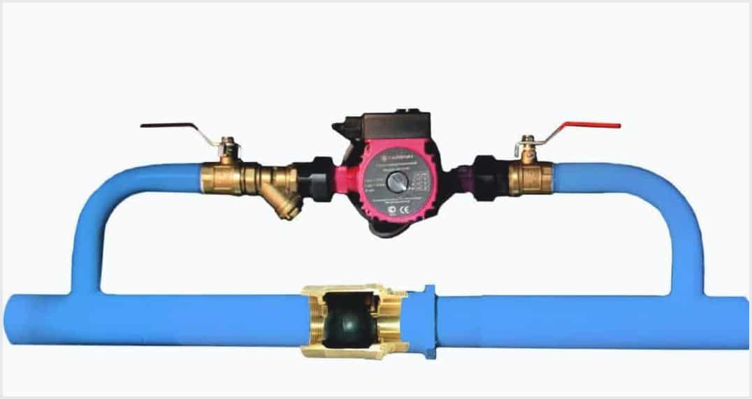 Схема движения в этом случае будет выглядеть так: байпас-основная магистраль-байпас. Чтобы этого не происходило, при работающем циркуляционном насосе, основная магистраль должна быть перекрыта. Если вы установите шаровой кран, то его потребуется перекрывать вручную. При установке обратного клапана перекрытие магистрали будет происходить автоматически.