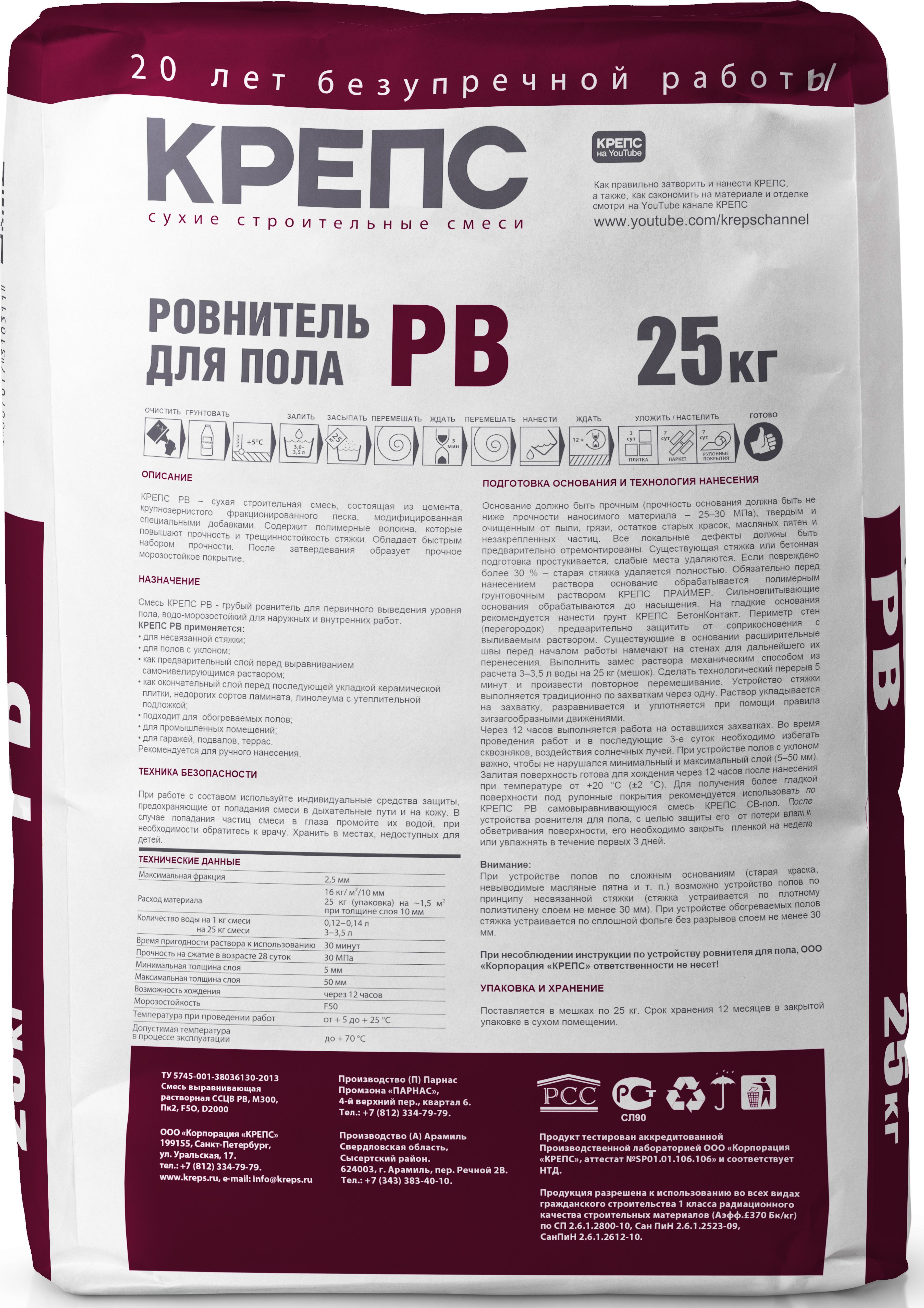Ровнитель от этого производителя поможет выровнять и скорректировать бетонные полы и монолитные цементные стяжки внутри сухих и влажных помещений под укладку керамической плитки, выстилающих покрытий, паркета и использования в системе «теплый пол».