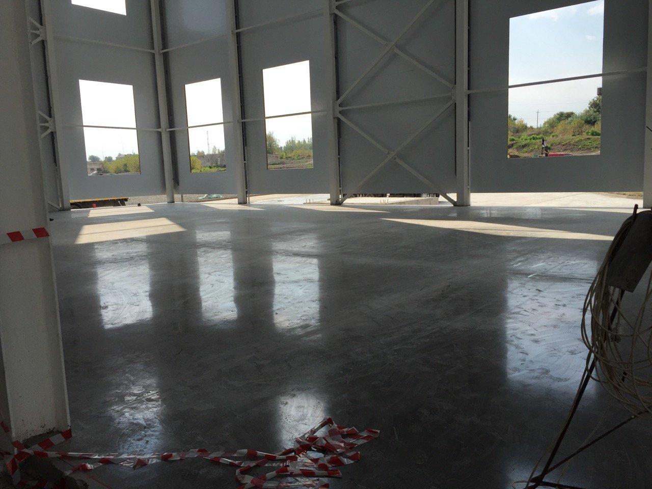 На отшлифованную поверхность наносится специальное защитное средство. Его использование необходимо для создания условий по уходу за бетонным полом. Нанесенный тонким слоем, состав предотвращает быстрое испарение влаги. Несложная процедура позволяет добиться прочности, отсутствия пыли, износостойкости.