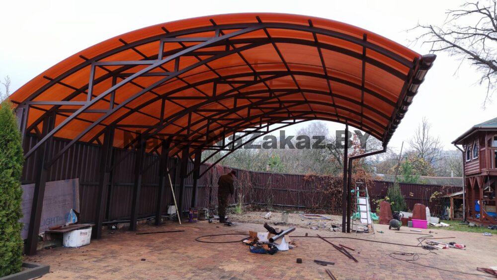 Лучше всего навес для двух машин из поликарбоната выглядит, если конструкция представлена в виде: