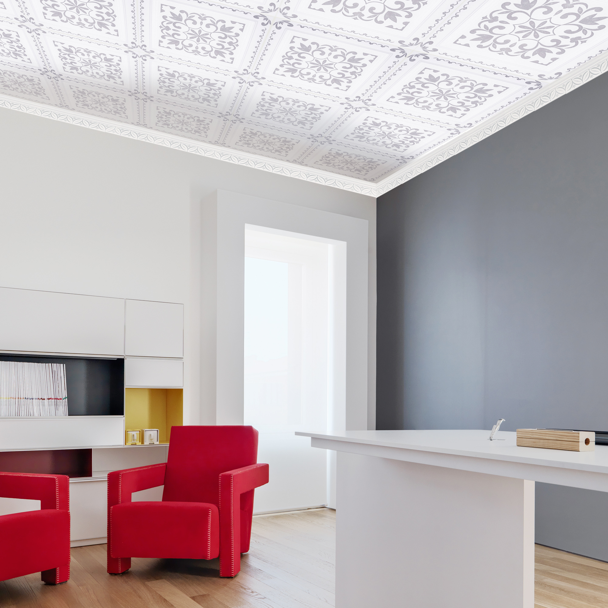 Для офисов, административных помещений традиционно рекомендуется купить потолочные панели для кассетных либо реечных потолков. В первом случае элементы имеют стандартные размеры 60 х 60 см либо 120 х 60 см, укладываются внутрь конструкции, собранной из металлических декоративных профилей, крепящихся к перекрытию. Во втором варианте длинномерные узкие планки ПВХ или из алюминия крепятся к аналогичному пространственному каркасу и дополнительно соединяются между собой.