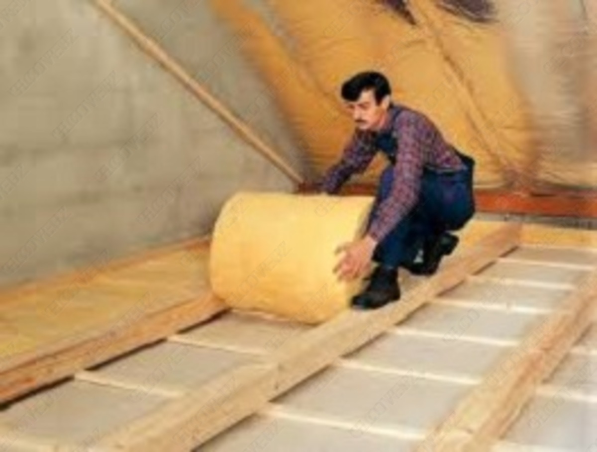 - Сверху слой утеплителя ничем не накрывают, но при необходимости передвигаться по чердачному полу монтируют недорогое напольное покрытие или раскладывают доски.