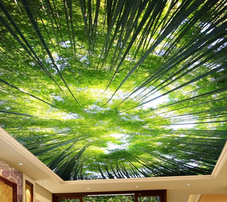 Но применять такие обои для отделки потолка имеет смысл в случае, когда этот же материал будет использоваться и для стен, чтобы в комнате создавалась общая картина.