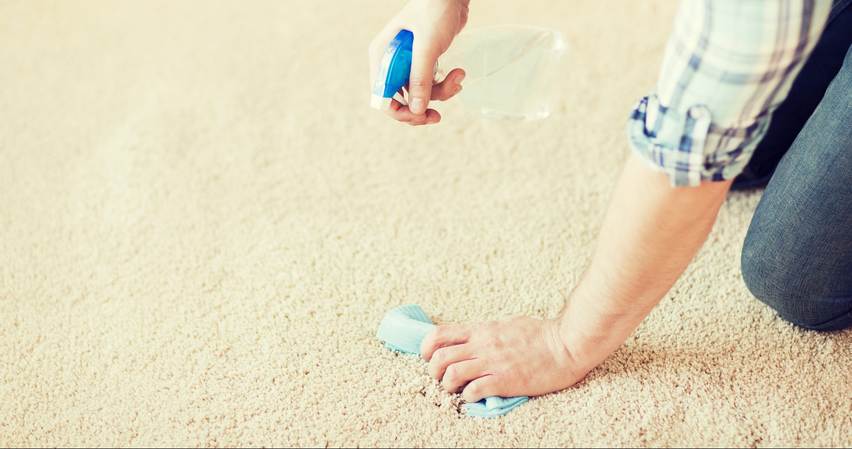 Лучший способ чистки ковров вручную – промокание пятна белой тряпкой, пропитанной белым уксусом.
