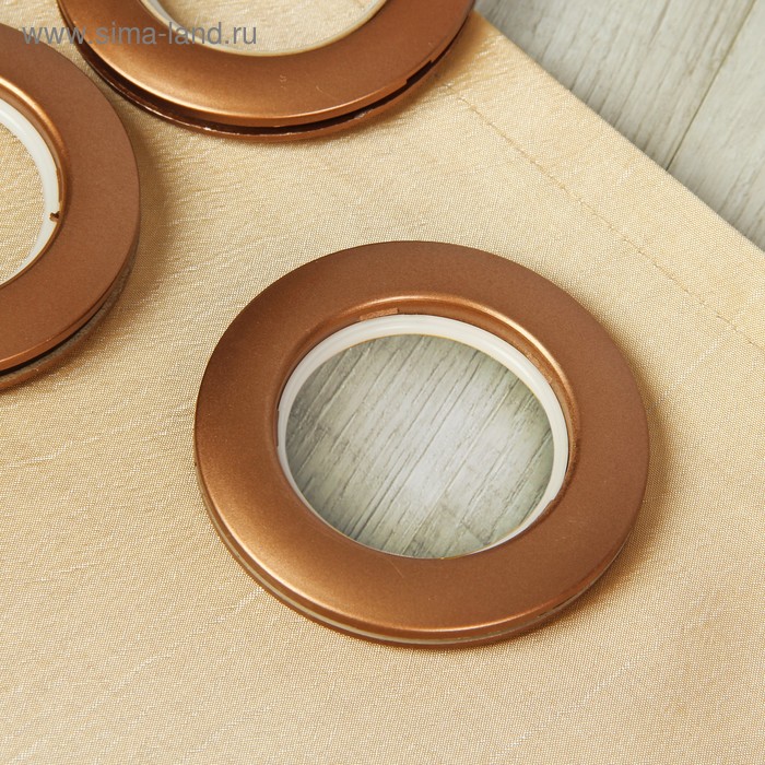Параметры подбирают в зависимости от толщины ткани, например, для полотна 5 мм лучше приобрести кольца с наружным диаметром 55 мм и внутренним — 35 мм. Современный рынок может предложить люверсы, изготовленные из разнообразных материалов: