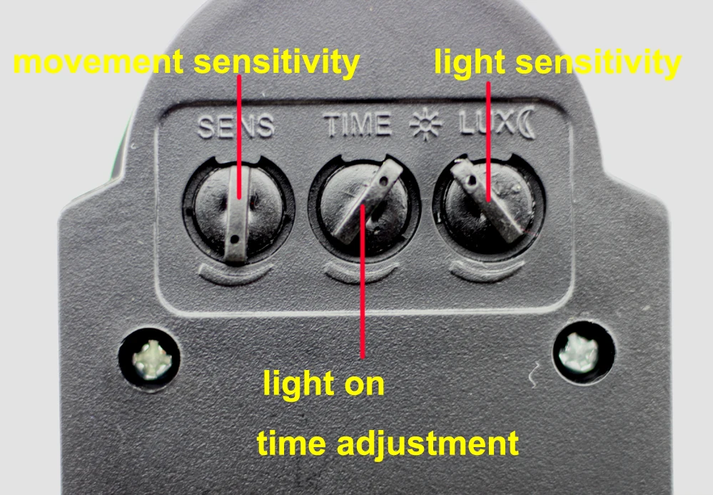 Например, при выпадении снега лучше снизить чувствительность, так как снег отражает свет, который может повлиять на срабатывание датчика. Пределы настройки чувствительности также бывают разными.