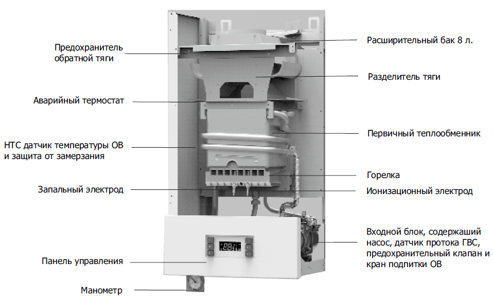 Чтобы понять, что это такое двухконтурный газовый котел, следует в подробностях разобрать строение его основных составных частей.