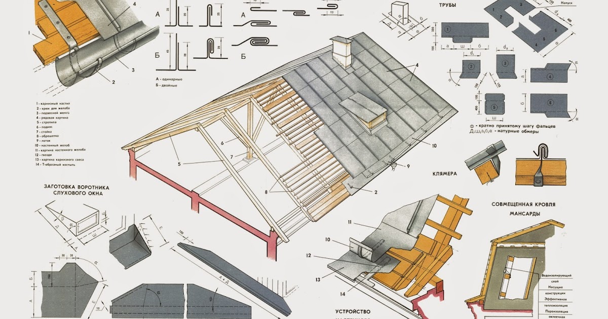 Нашли ошибку?В скатных крышах различают следующие элементы:
