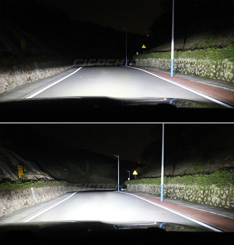 Светодиодные фары имеют более яркий свет, поскольку они излучают белый свет вместо желтого света галогенных ламп. Светодиодные лампы имеют световой поток от 3000 до 4000 люмен, а галогенные — от 1000 до 1500 люмен.