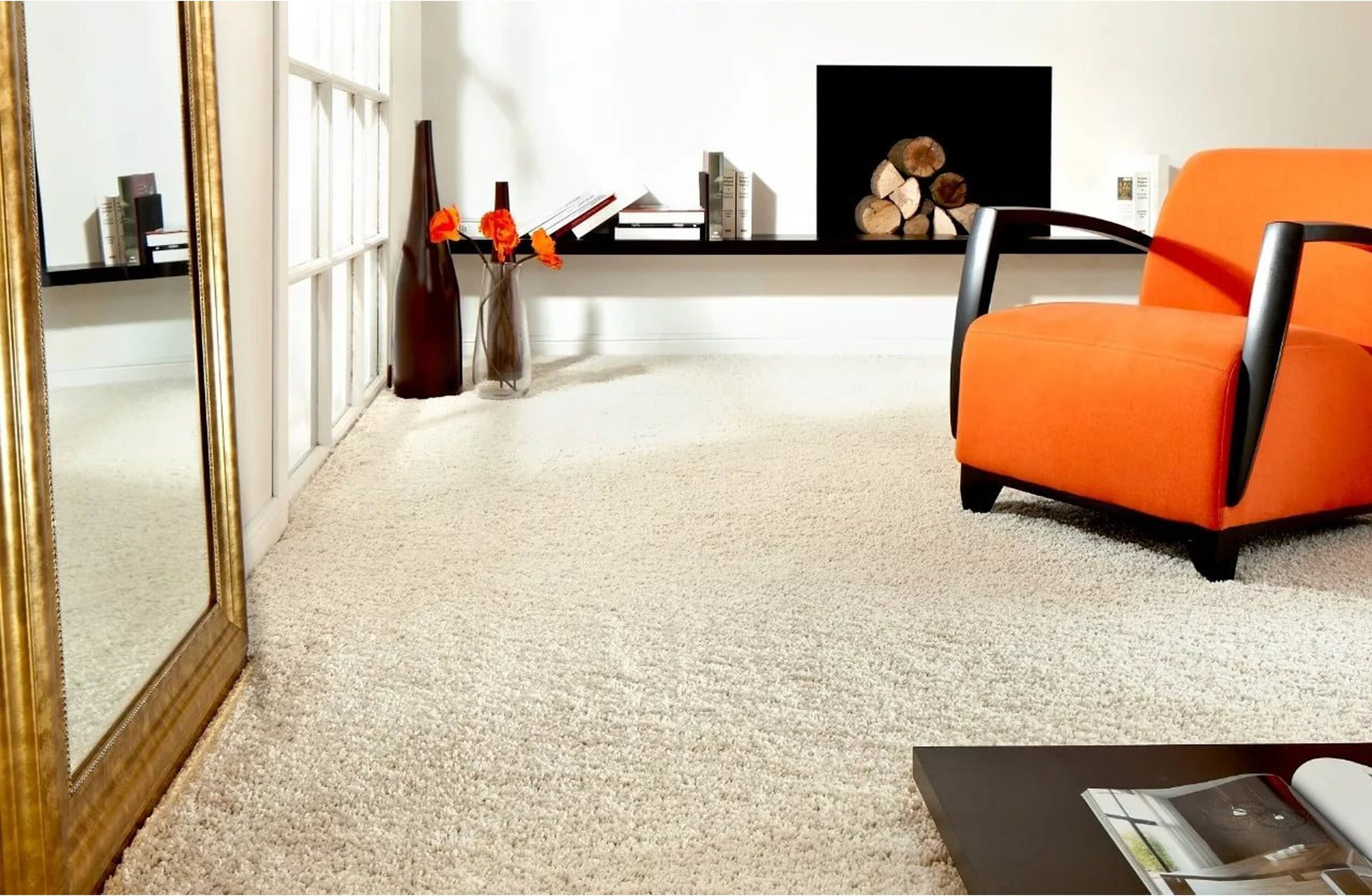 Ковер с длинным ворсом в интерьере