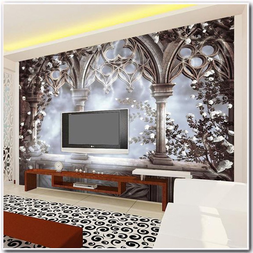- создание визуальных эффектов – в маленькую гостиную лучше подобрать расширяющие пространство обои, например, дорога вдаль, уютные дворики с лестницами ведущими вверх, арки;