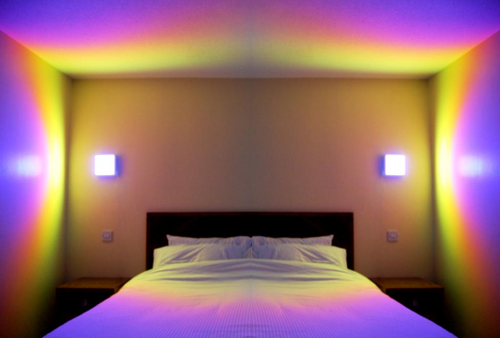 Сама лента может монтироваться в карнизе потолка, вертикально или горизонтально на стенах. Эффект получается стильный, оригинальный и привлекательный. Применяется такой вариант сегодня не только для ночных клубов, для которых он и был разработан, но и для больших гостиных. Интересен он в спальных комнатах, кухнях, но немного в ограниченном варианте. Яркая и слишком часто сменяемая подсветка не нужна. В последнем случае подойдут мягкие смены цвета под расслабляющую и приятную музыку. Для установки применяются многоцветные ленты, обязательно присутствует специальный аудиоконтроллер.