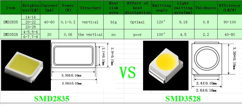 Отличительной особенностью всех светодиодных лент является вариант установки светодиодов. Зачастую можно встретить светодиоды, имеющие обозначение SMD3528 либо SMD5050.