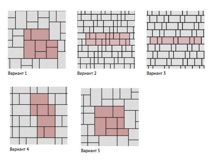 При укладке тротуарной брусчатки за счет ее прямоугольной формы очень легко соблюсти необходимое сцепление. Для этого нужно укладывать брусчатку таким образом, чтоб одна плитка наполовину заходила на другую. При этом способе можно укладывать кирпичики брусчатки по самым различным схемам: в шахматном порядке, елочка, зигзаг, плетенка, ромбы, различные сложные узоры. Сочетая разные цвета, можно достичь еще большего количества вариантов укладки брусчатки. Только в этой статье мы рассмотрели 50 схем, на самом же деле количества узоров не счесть.